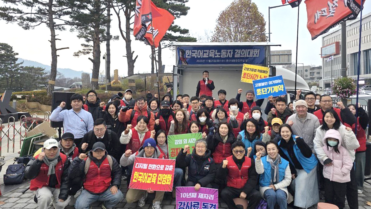 11.25. 한국어교육노동자 결의대회 한국어강사분과는 서울 대통령실 앞에서 '한국어교육노동자 결의대회'를 진행했습니다. |