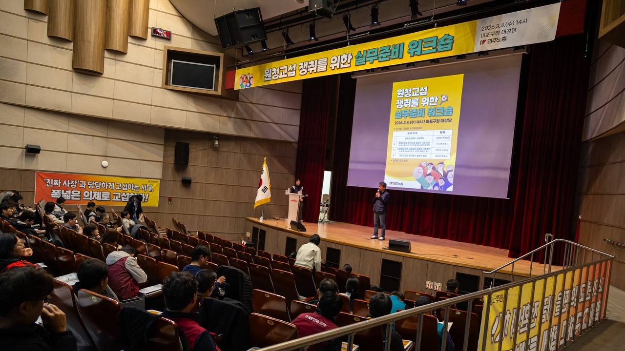 서울 마포구청에서 열린 '원청교섭 쟁취를 위한 실무준비 워크샵'에 참가했습니다.
