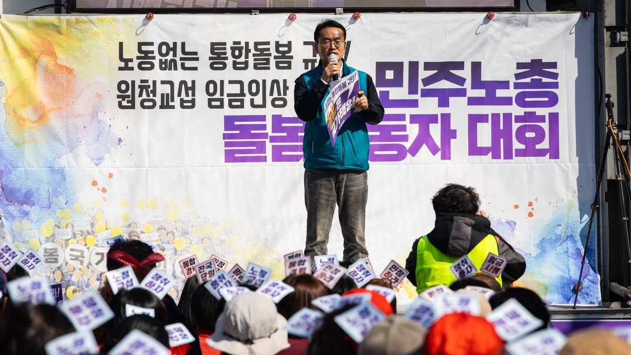 서울 청와대 앞에서 열린 '민주노총 돌봄노동자대회'에 참가했습니다.