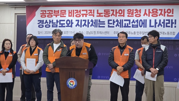 경남본부는 경남도청 프레스센터에서 '경상남도와 지자체는 단체교섭에 나서라' 기자회견을 진행했습니다.
