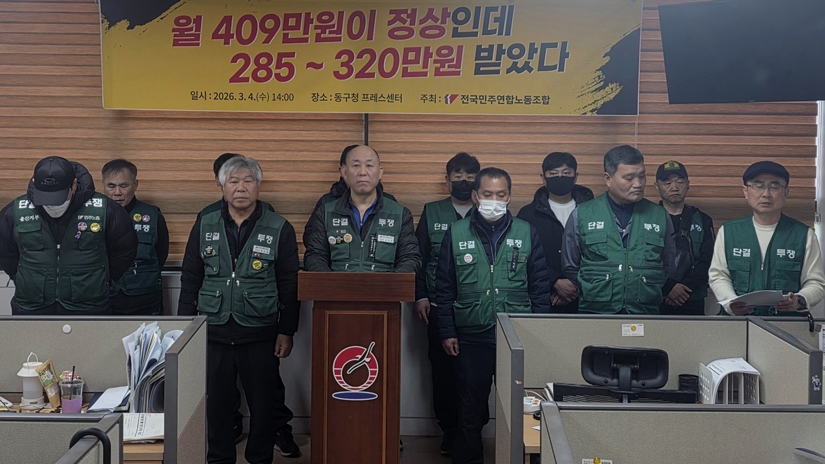 울산 동구청에서 '월 409만원이 정상인데 285~320만원 받았다' 기자회견을 진행했습니다.