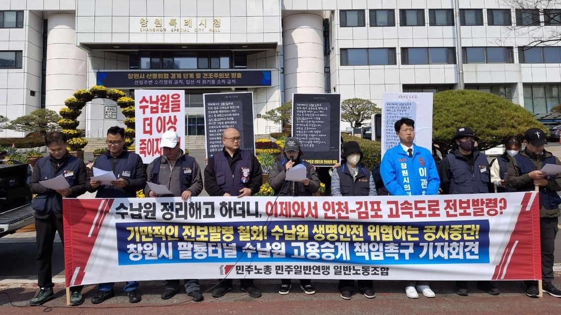 팔룡터널지회는 창원시청 앞에서 '창원시 팔룡터널 수납원 고용승계 책임촉구 기자회견'을 진행했습니다.
