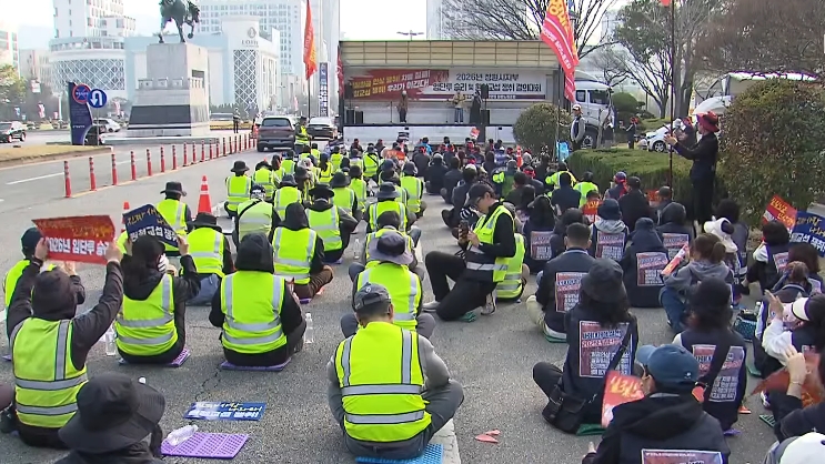 정부서울청사 앞에서 '공공부문 비정규직 노동자 대정부 원청교섭 요구 기자회견'을 진행했습니다.